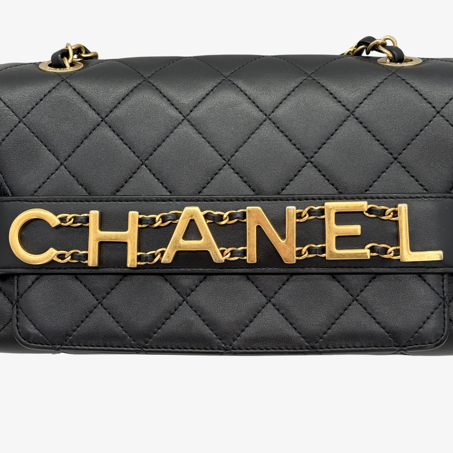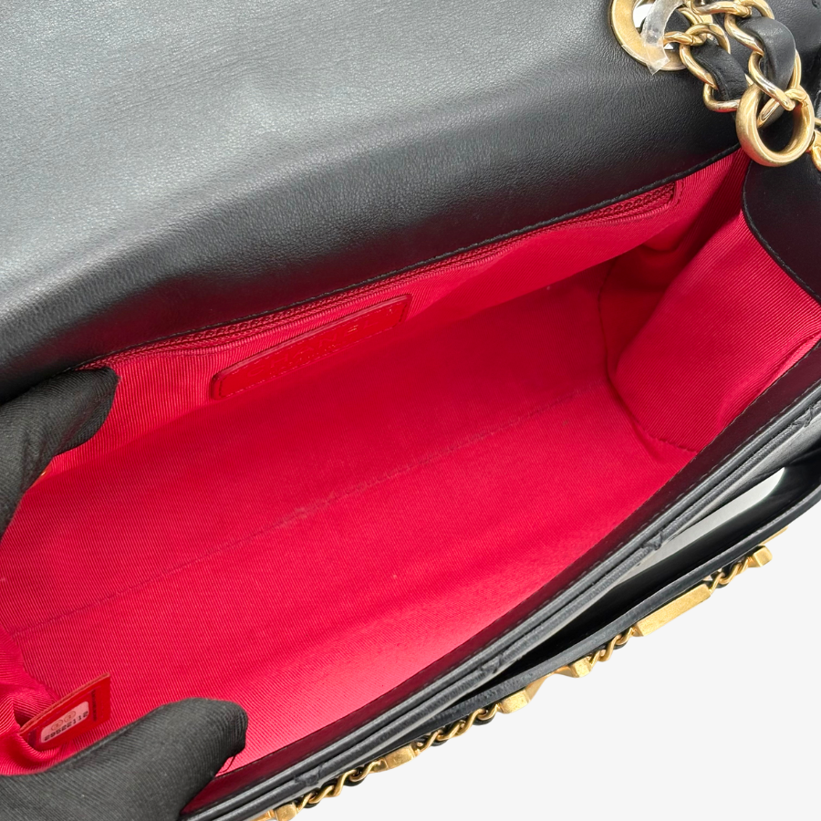 JAH219 - CHANEL Vintage Black Calfskin Enchained Flap Bag
