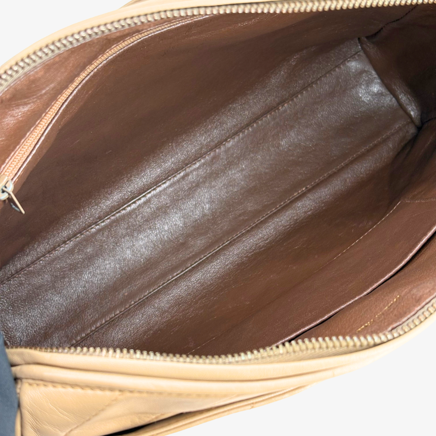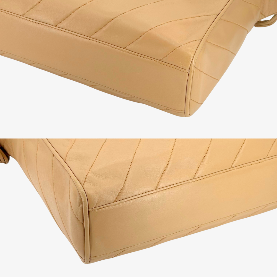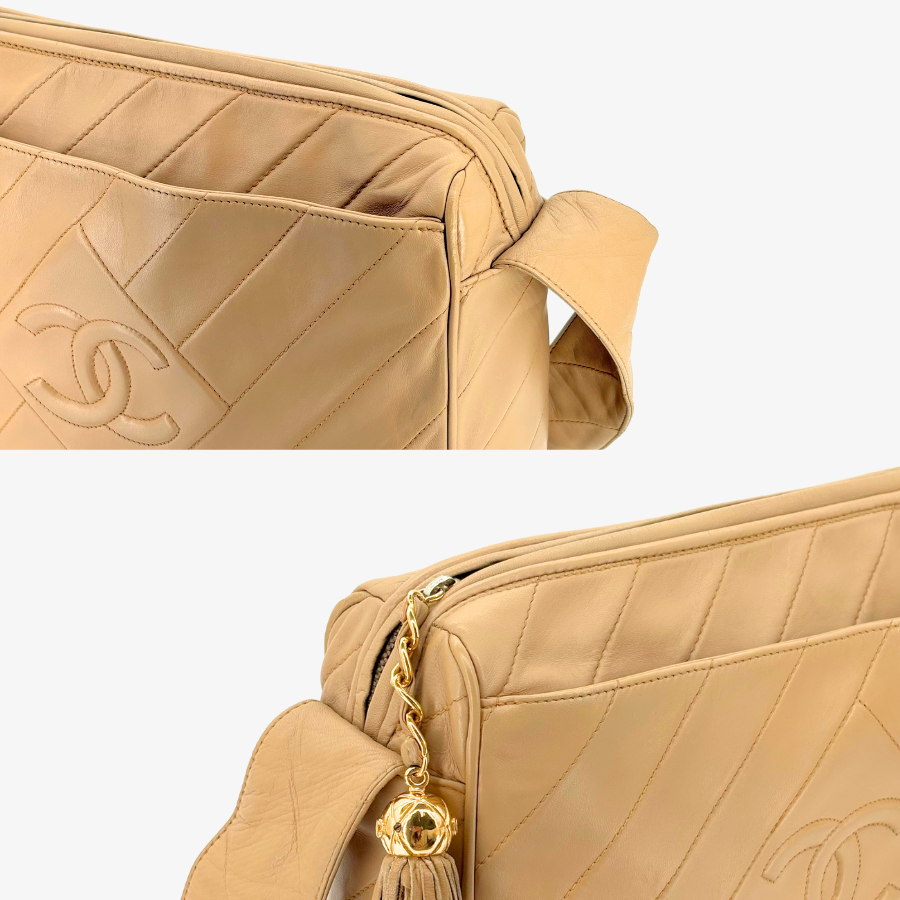 JZ752 - CHANEL Vintage Beige Lambskin Diagonal Stich CC Tassel Camera Bag