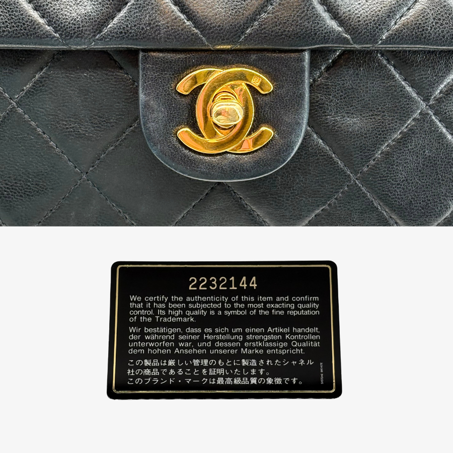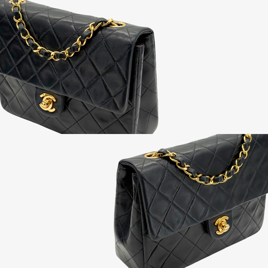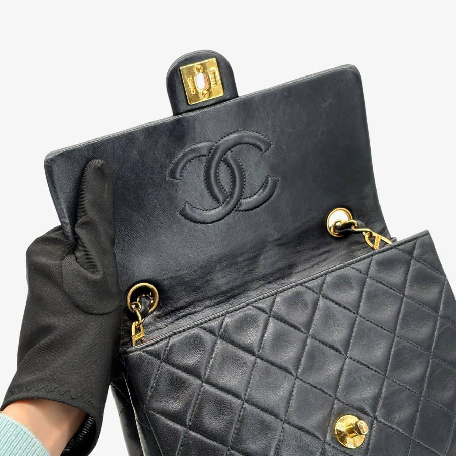 JAH228 - CHANEL Vintage Black Lambskin 20cm Square Flap Bag