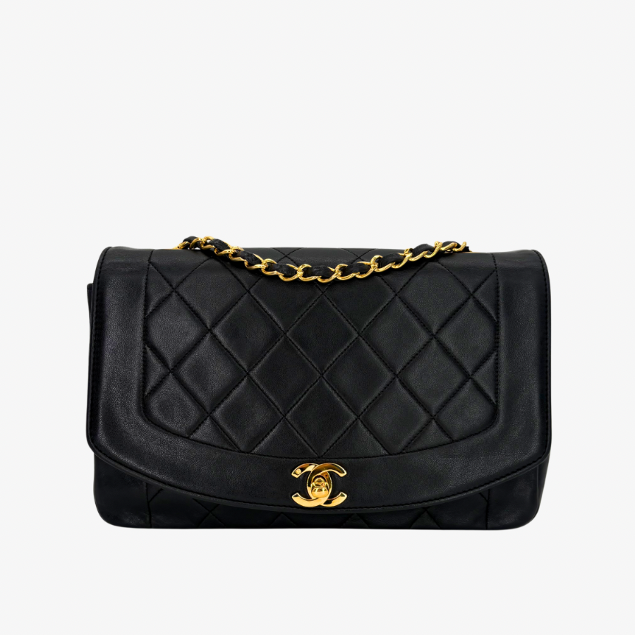 RG178 - CHANEL Vintage Black Lambskin 25cm Diana Flap Bag