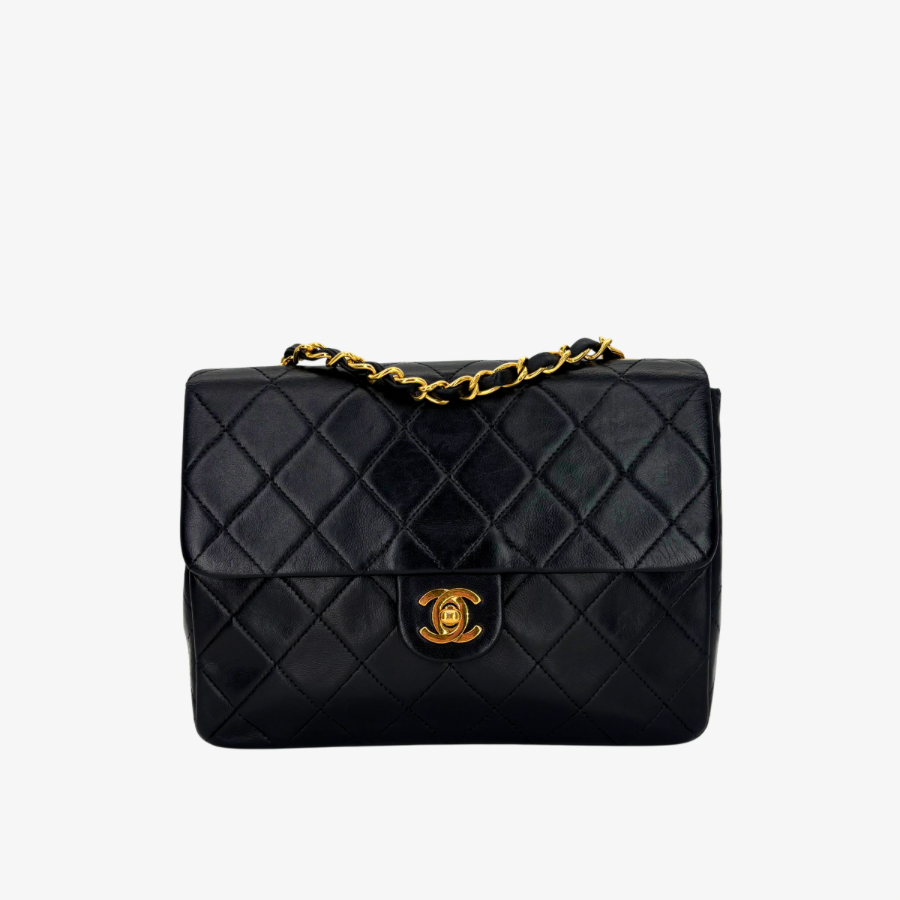 RG480 - CHANEL Vintage Black Lambskin 20cm Mini Square Flap Bag