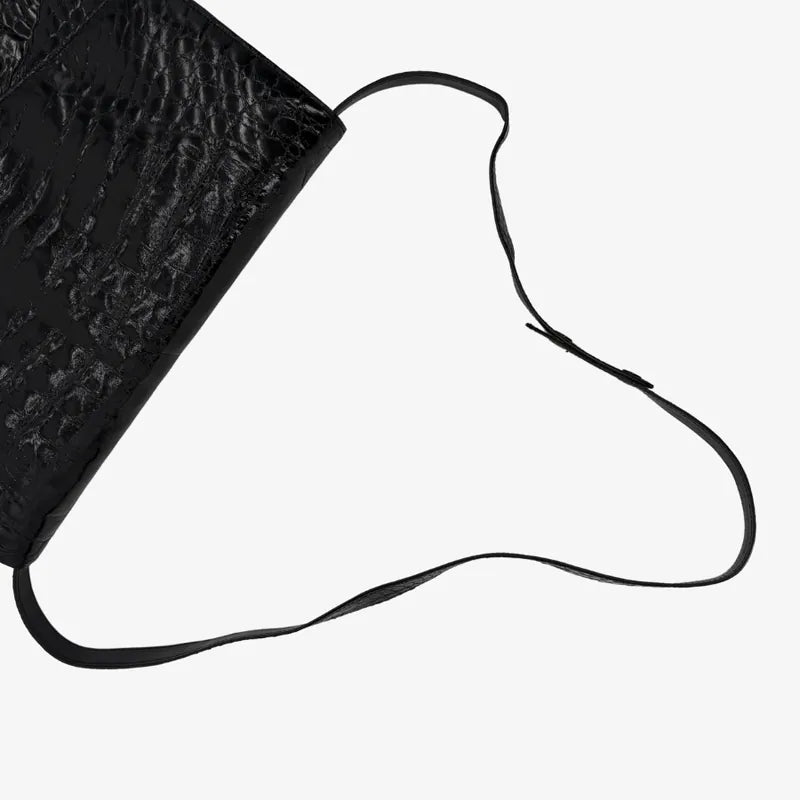 JY398 - CHANEL Vintage Black Crocodile Skin Flap Bag