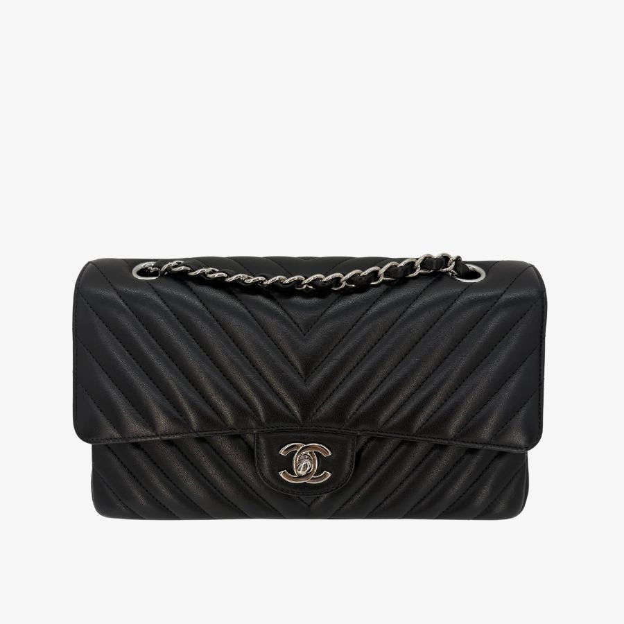 CS036 - CHANEL Vintage Black Lambskin Chevron Flap Bag