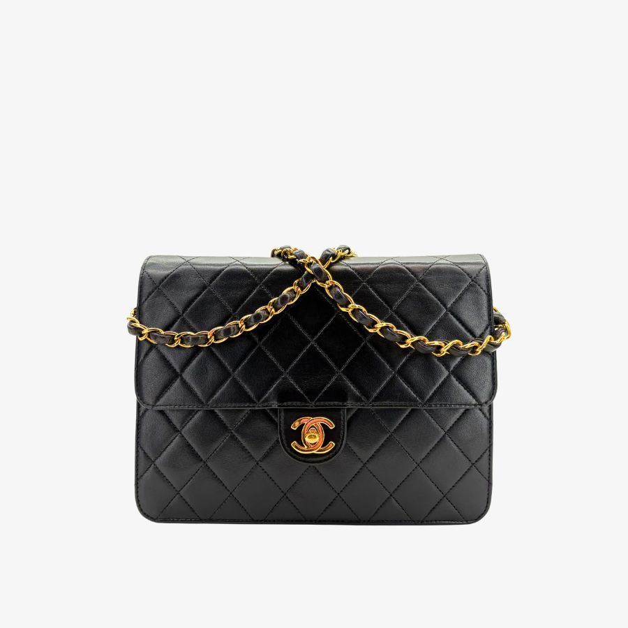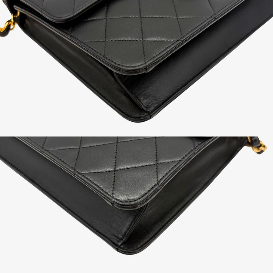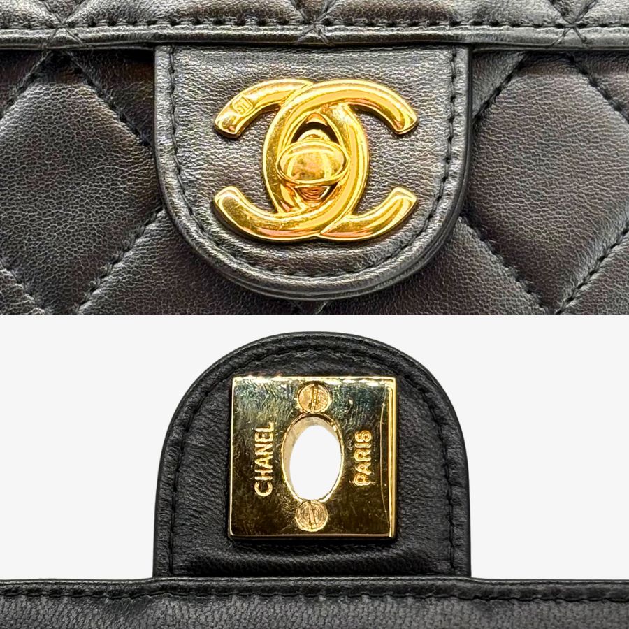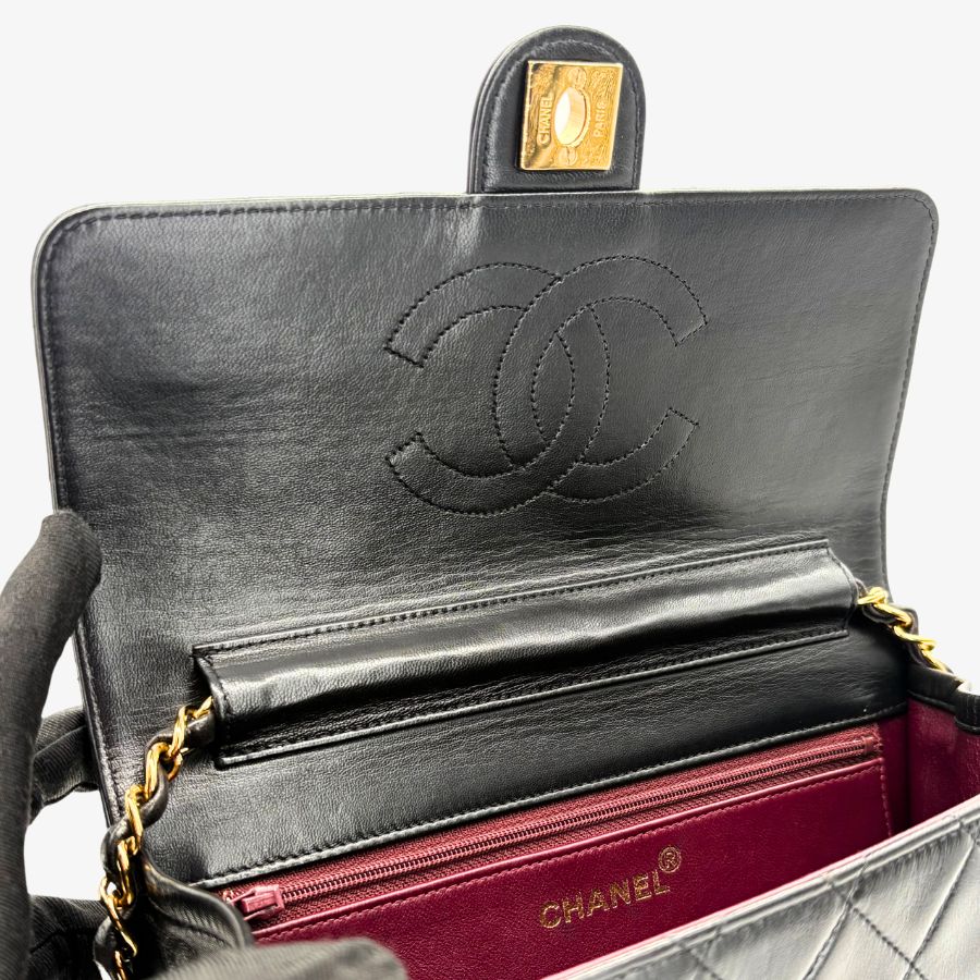 JZ515 - CHANEL Vintage Black Lambskin Flap Bag