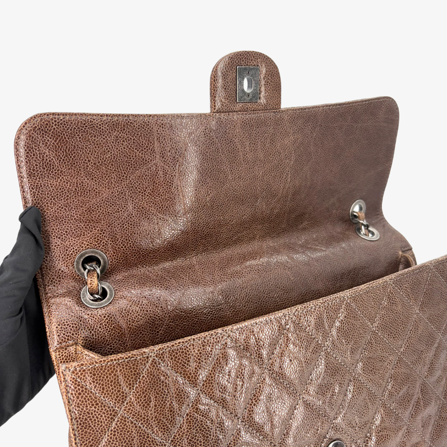 RG257 - CHANEL Vintage Brown Caviar Leather Crumpled Grained CC Flap Bag