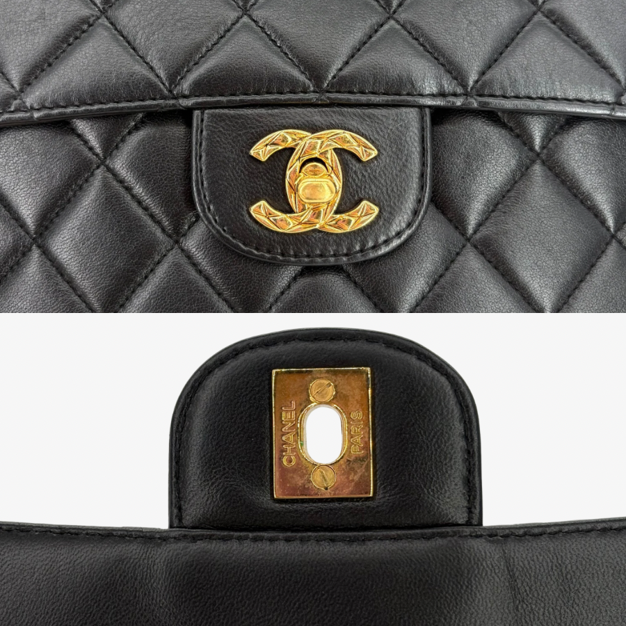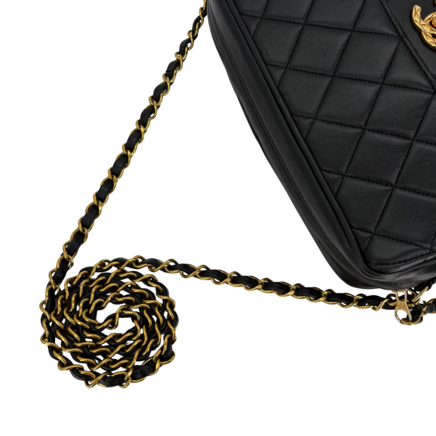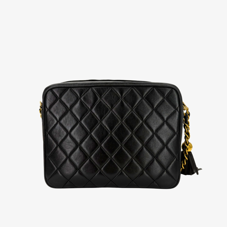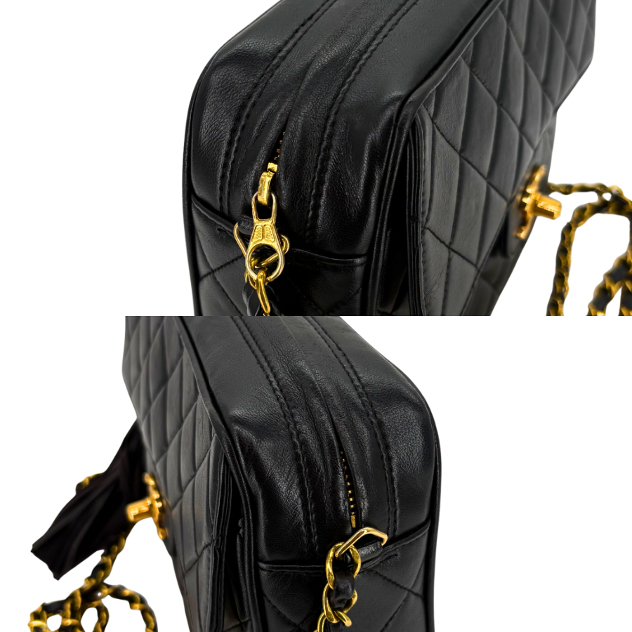 RG322 - CHANEL Vintage Black Lambskin Quilted Camera Bag