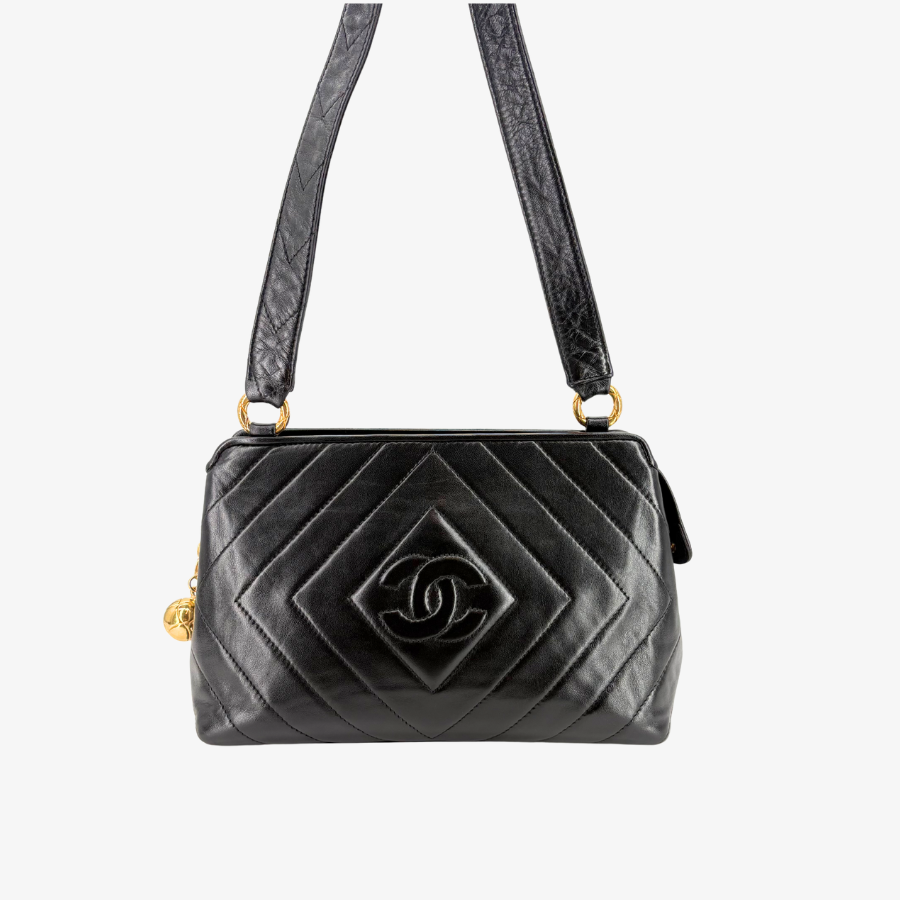 JY981 - CHANEL Vintage Black Lambskin Ball Charm Shoulder Bag