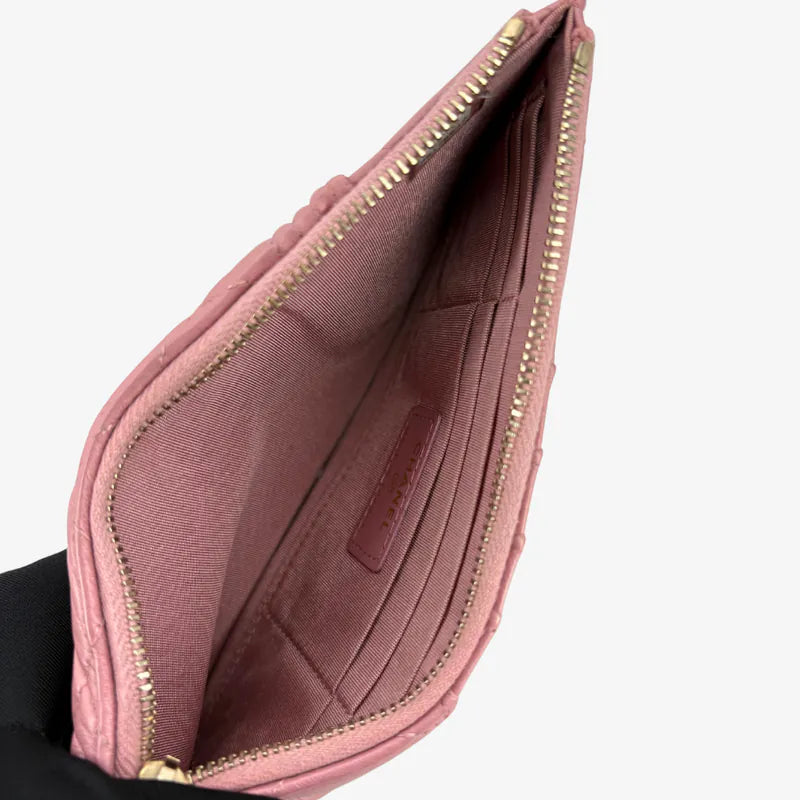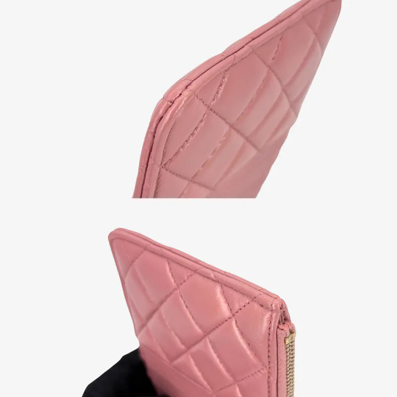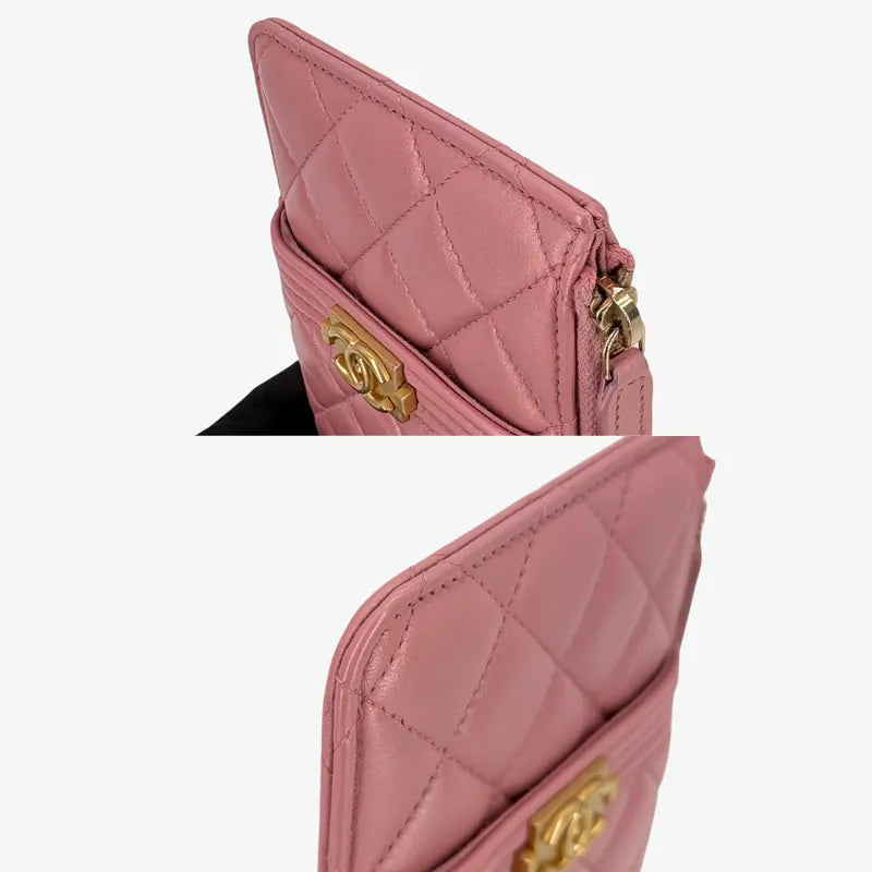 C608 - CHANEL Leboy Pink Calfskin Long Wallet Phone Holder