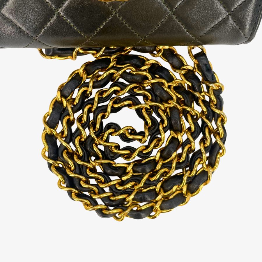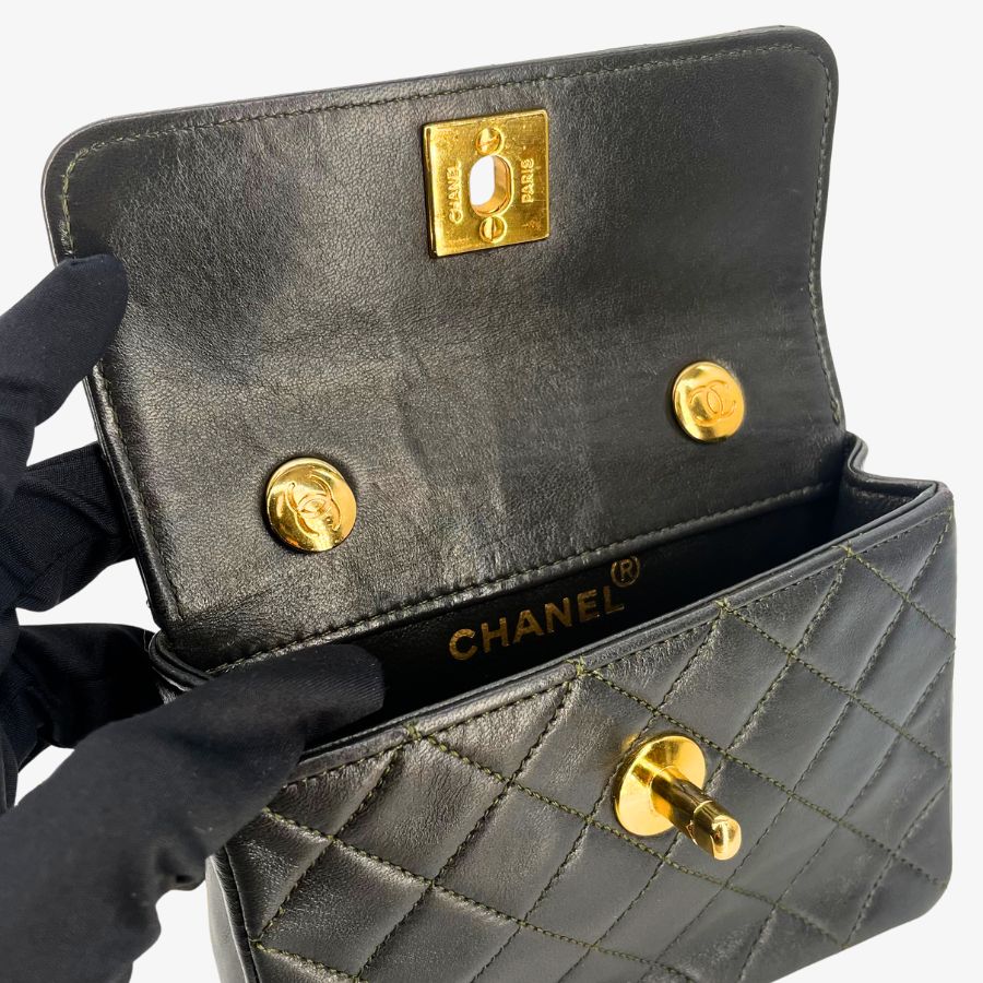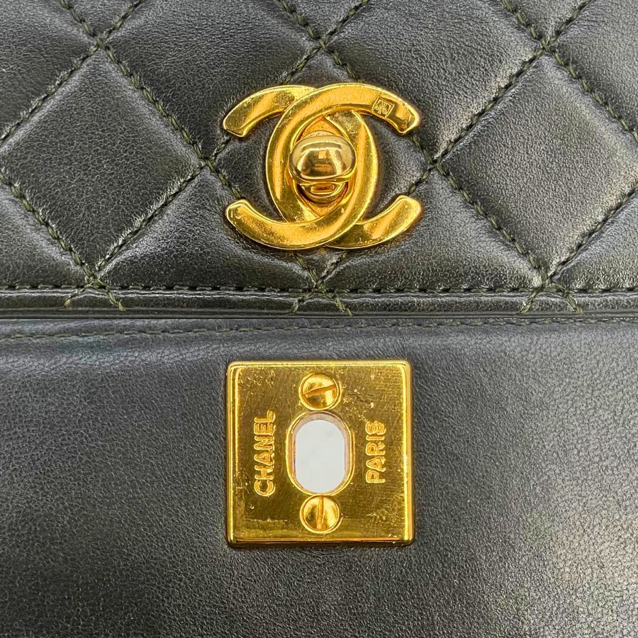 90248136 - CHANEL Vintage Dark Green Lambskin Mini Flap Bag
