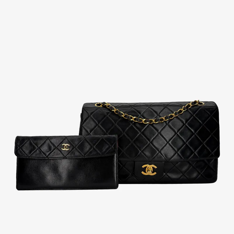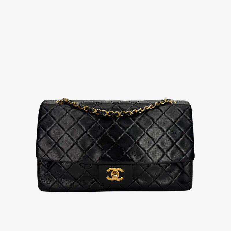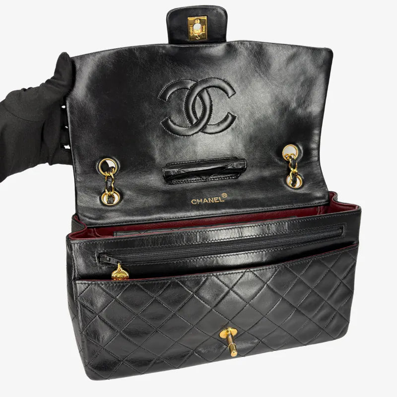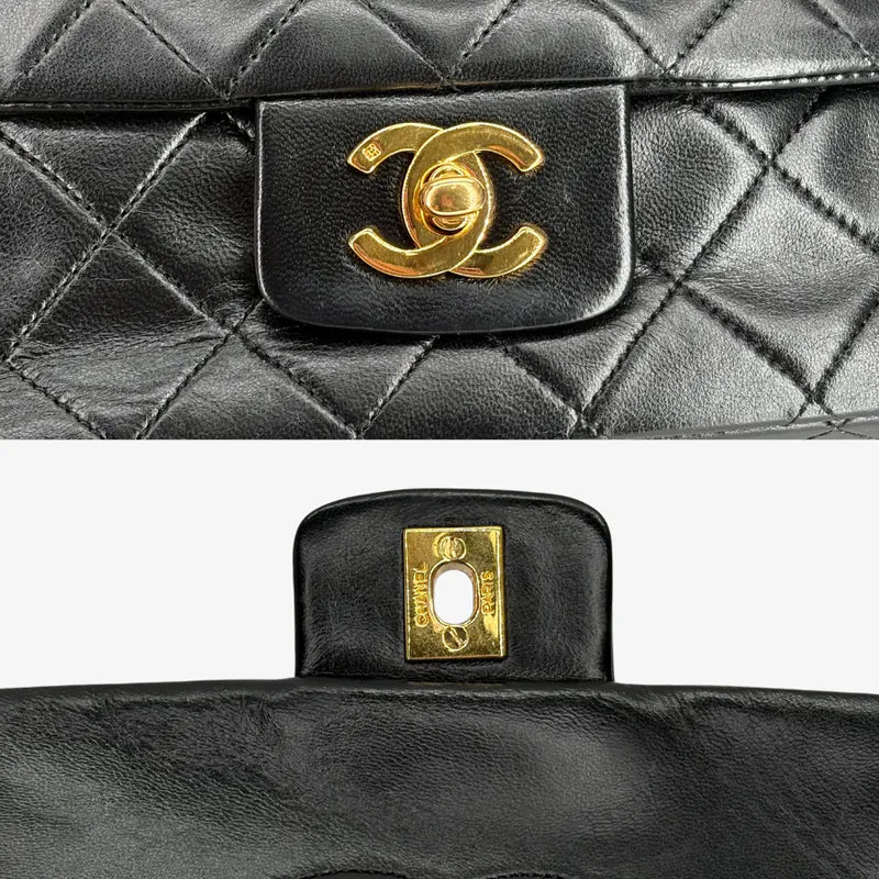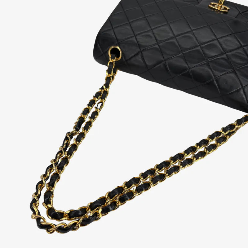 C632 - CHANEL Vintage Black Lambskin 27cm Classic Flap Bag