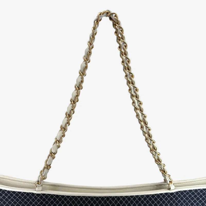 C650 - CHANEL Vintage Navy Canvas Micro Matelasse Chain Tote Bag