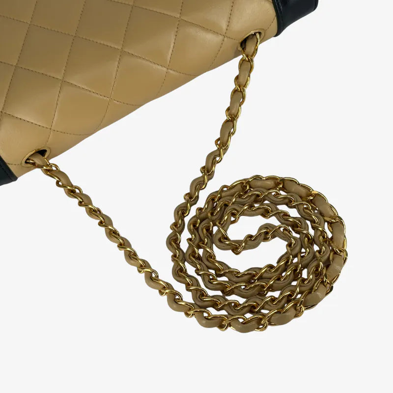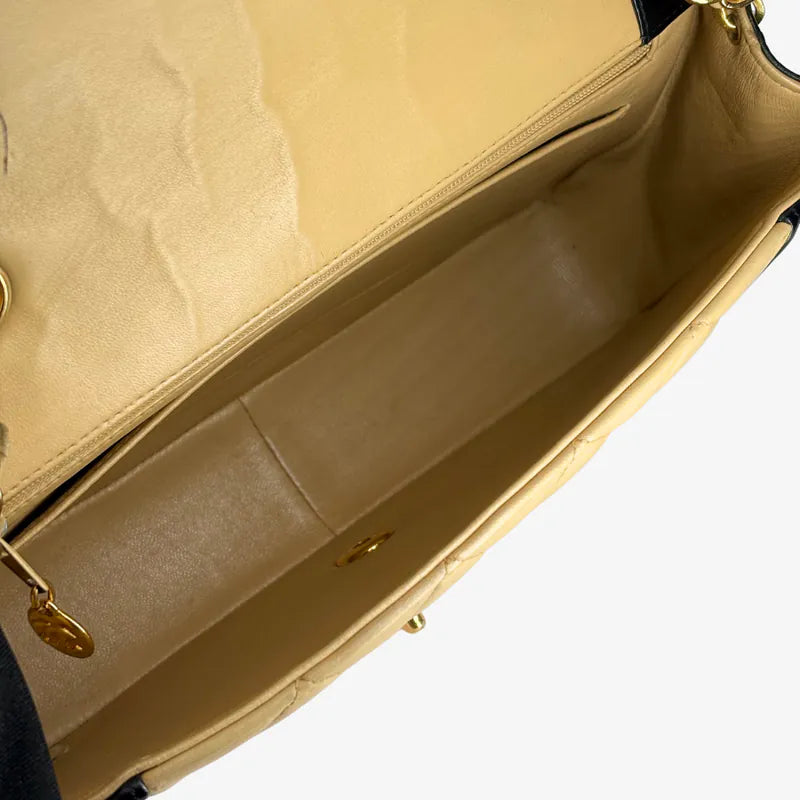 C651 - CHANEL Vintage Beige/Black Lambskin 25cm Diana Flap Bag