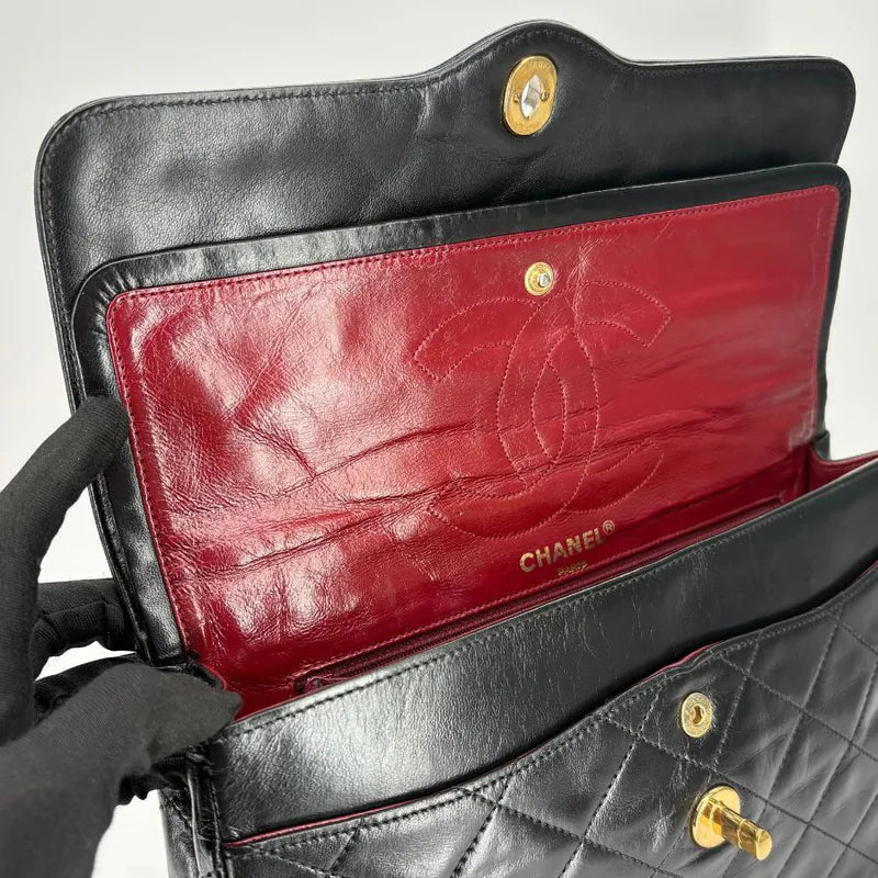 C652 - CHANEL Vintage Black Lambskin Paris Limited Flap Bag