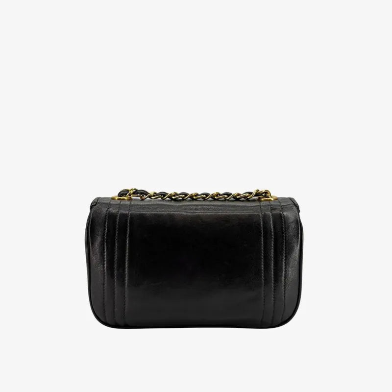 C660 - CHANEL Vintage Black Lambskin Full Flap Bag