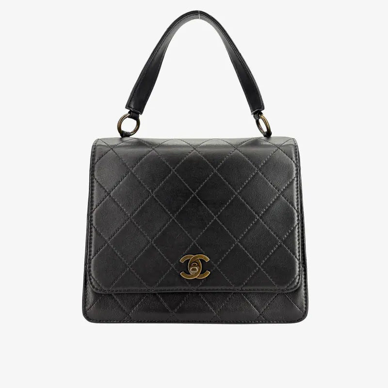 HA029 - CHANEL Vintage Black Calfskin Quilted Handbag