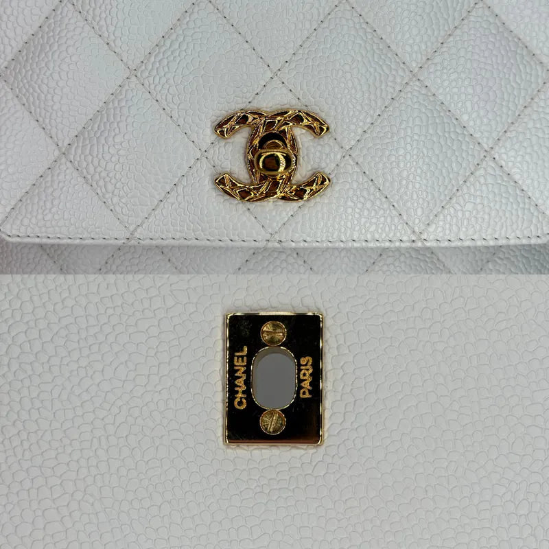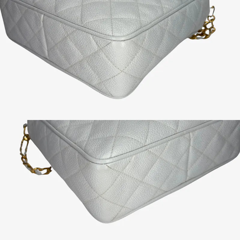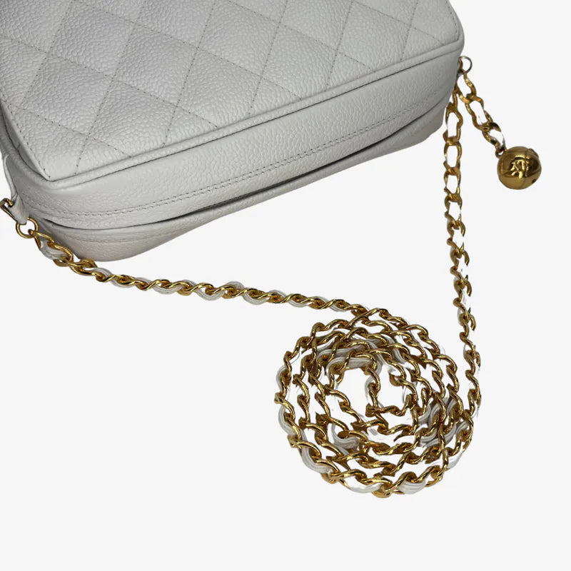JW814 - CHANEL Vintage White Caviar Leather Quilted Camera Bag