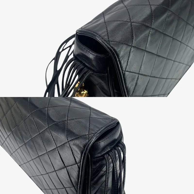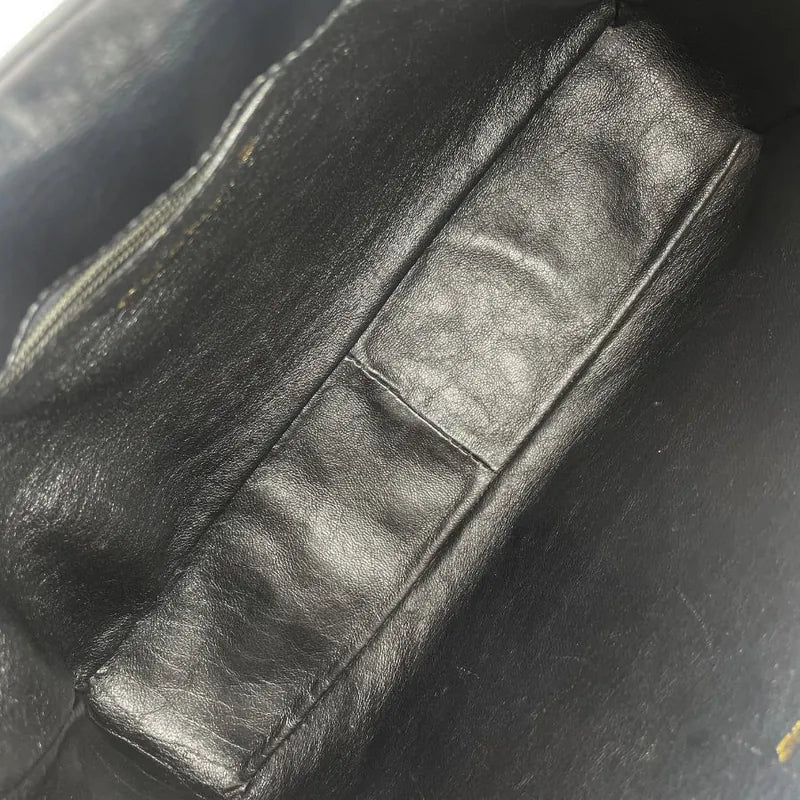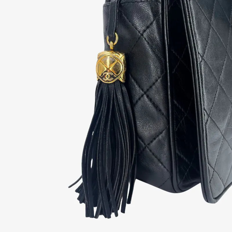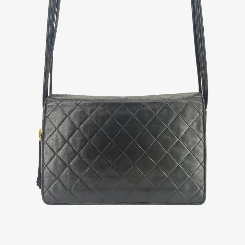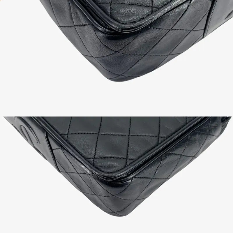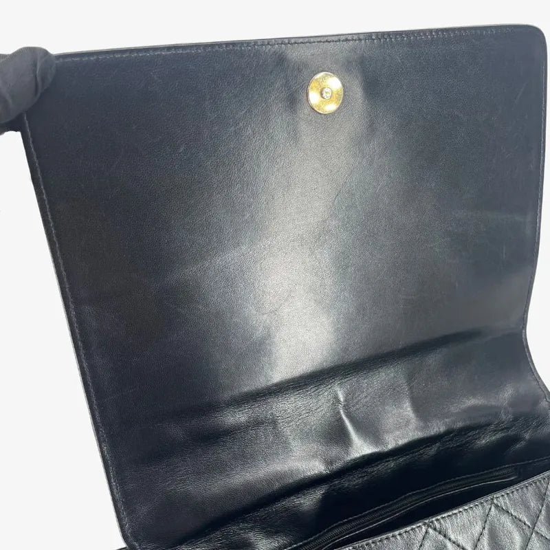 JZ744 - CHANEL Vintage Black Lambskin Quilted Full Flap Bag