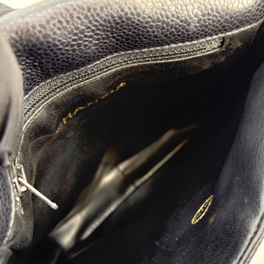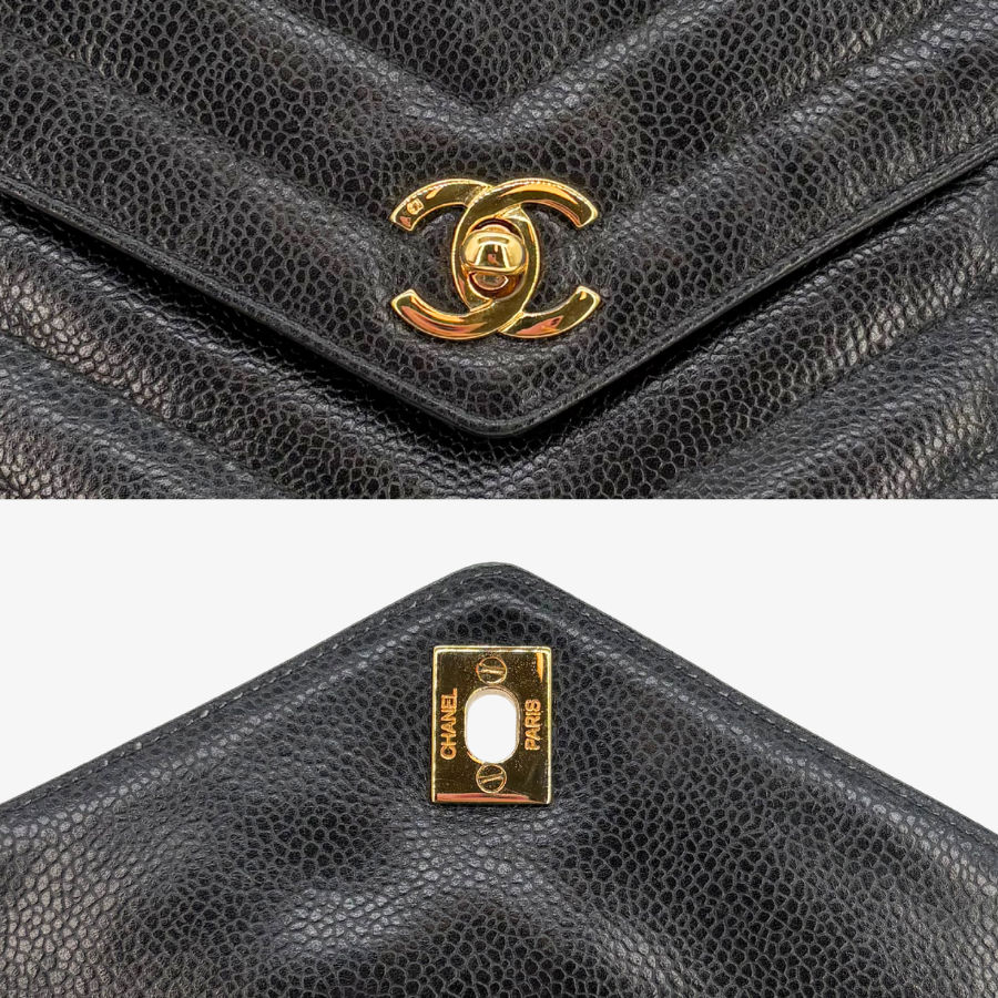 KA248 - CHANEL Vintage Black Caviar Leather Chevron Shoulder Bag