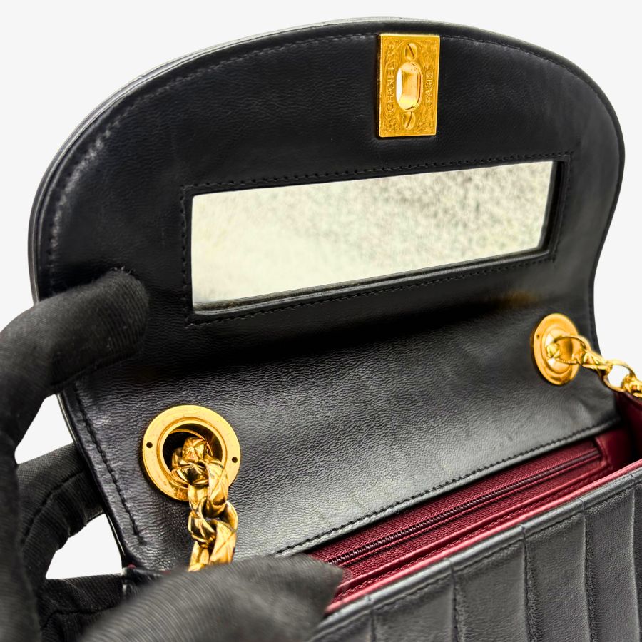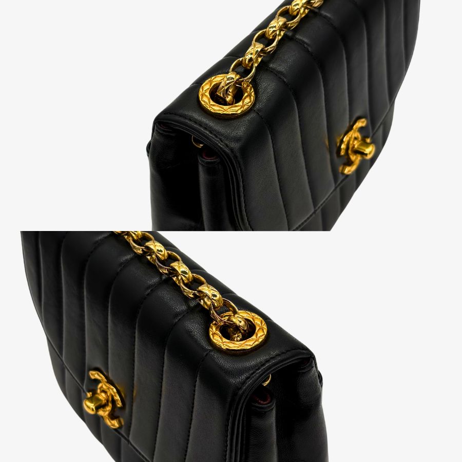KA735 - CHANEL Vintage Black Lambskin Vertical Gold Chain Flap Bag