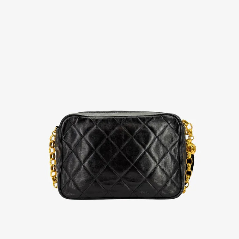 RG161 - CHANEL Vintage Black Lambskin Gold Chain Camera Bag