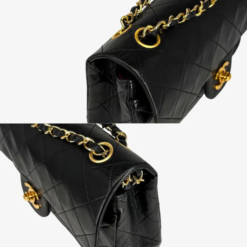 RG181 - CHANEL Vintage Black Lambskin 23cm Classic Flap Bag