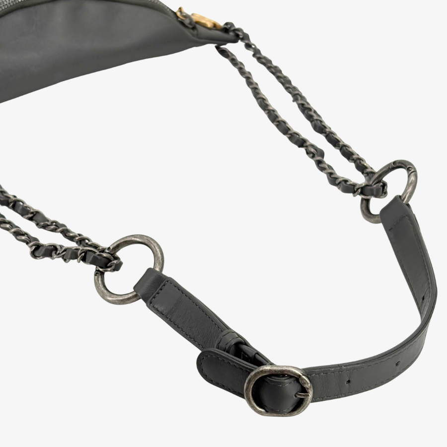 RG408 - CHANEL Vintage Gray Calfskin Chain 20s Signe Waist Bag