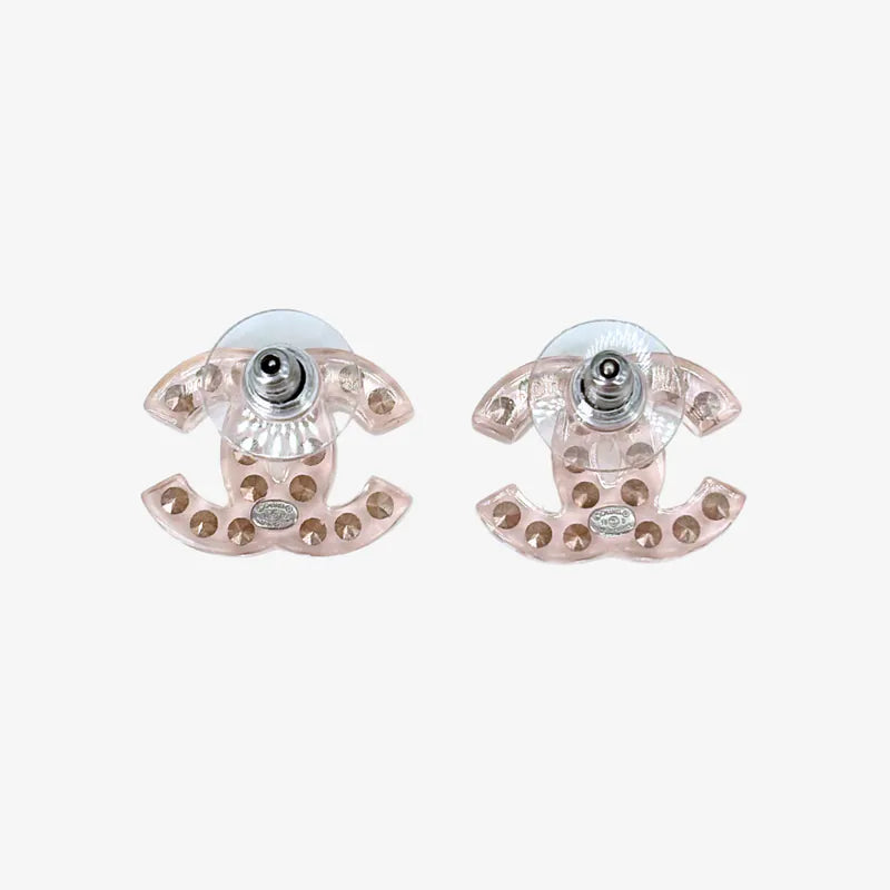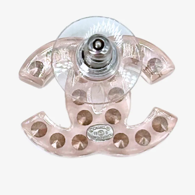 RE653 - CHANEL Vintage CC Logo Transparent Acrylic Crystal Earrings