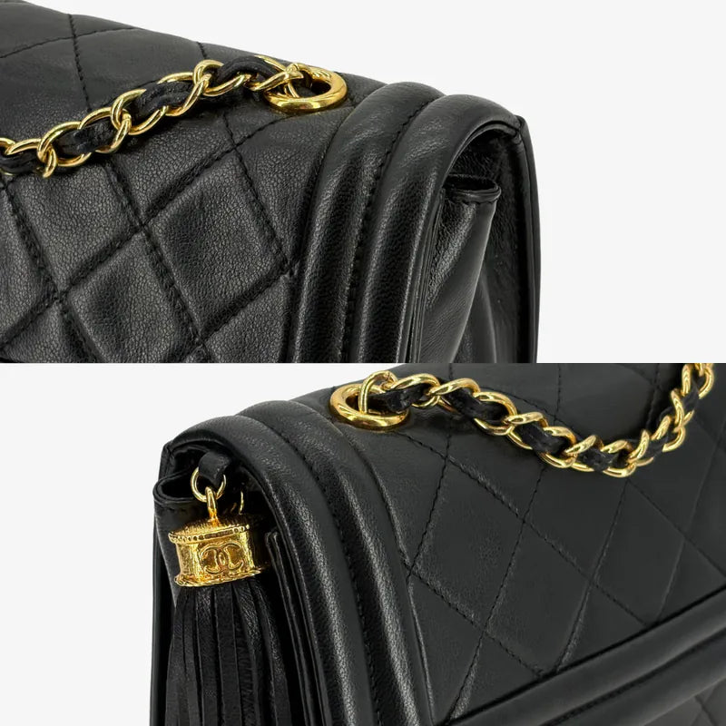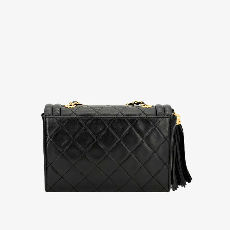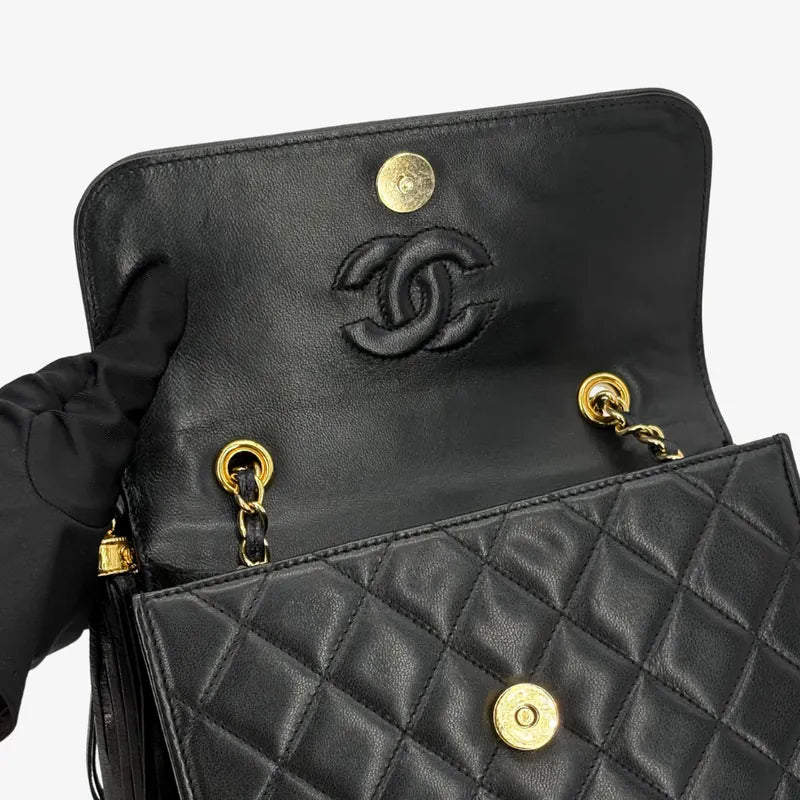 RE526 - CHANEL Vintage Black Lambskin Quilted Flap Bag