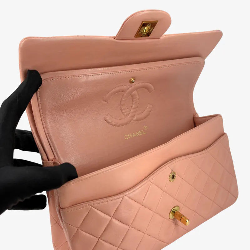 C654 - CHANEL Vintage Pink Lambskin 25cm Classic Flap Bag