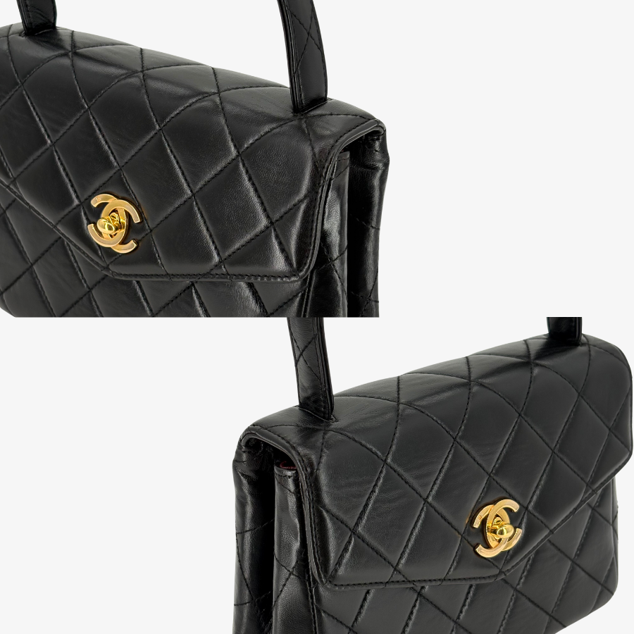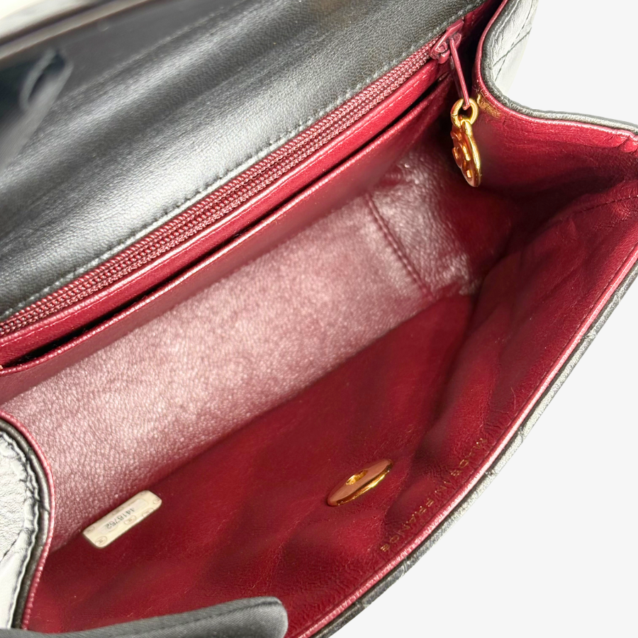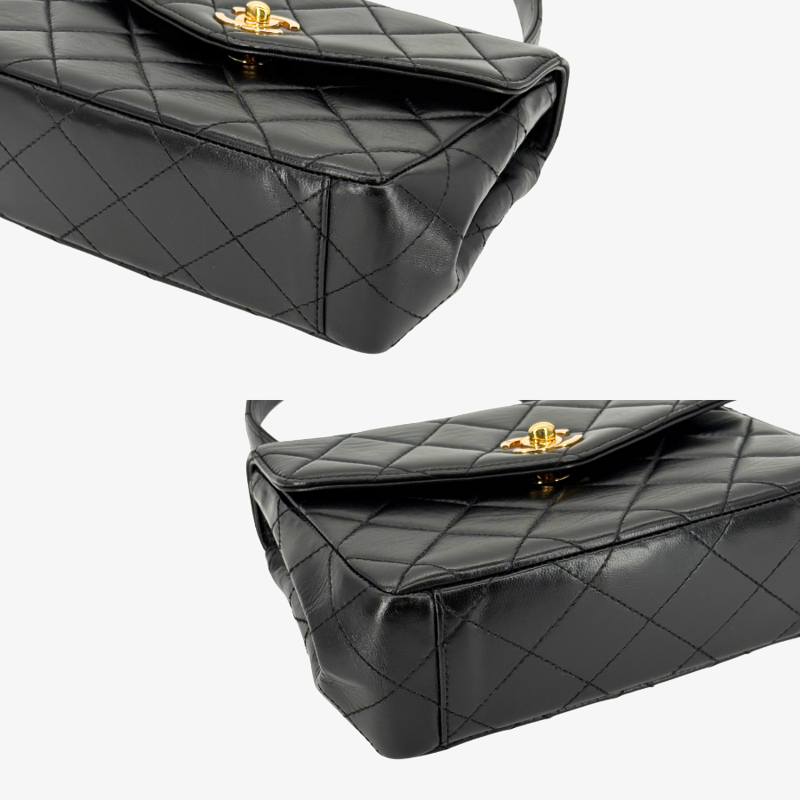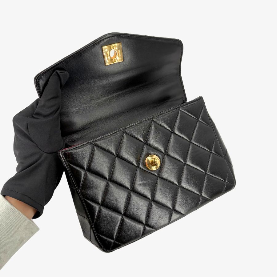 KA723 - CHANEL Vintage Black Lambskin Mini Kelly Flap Bag