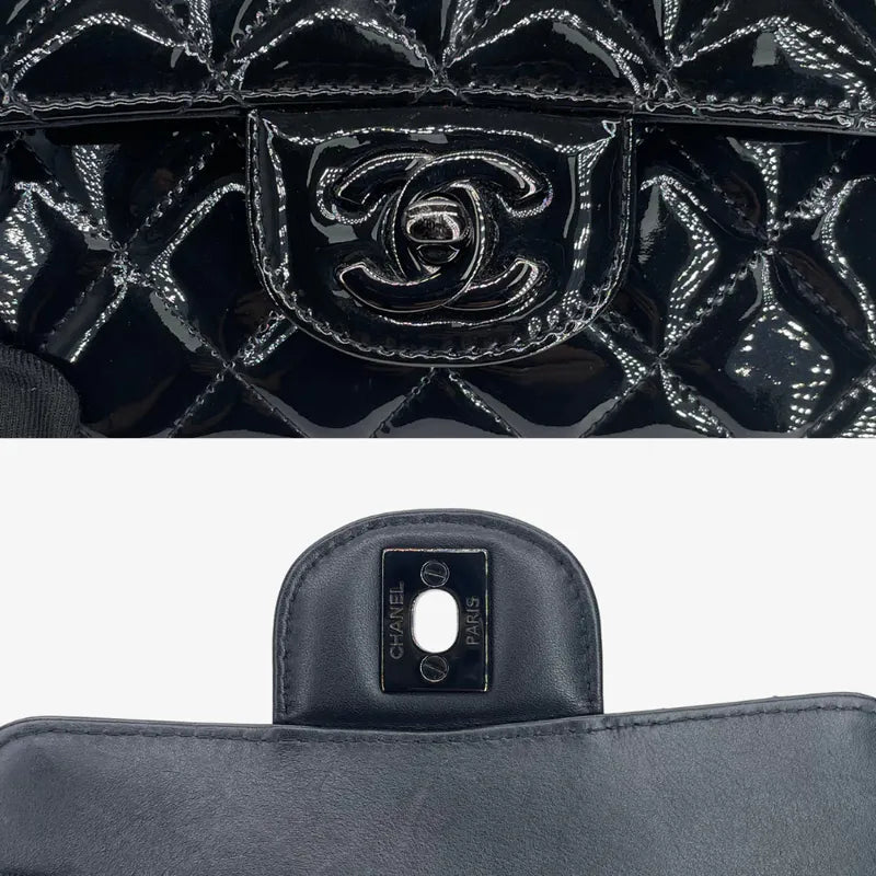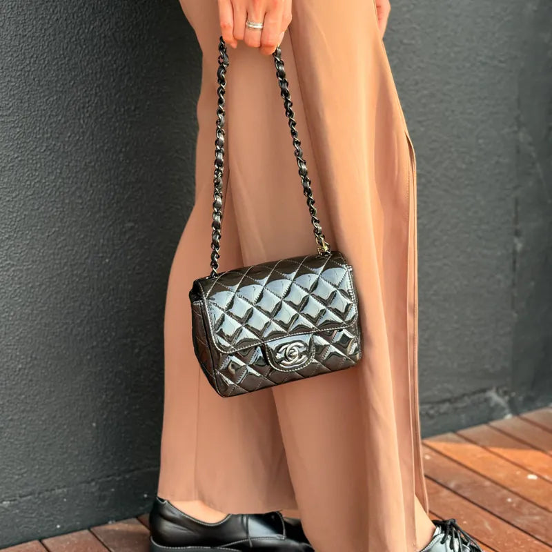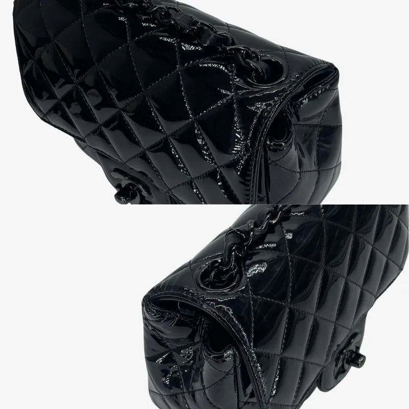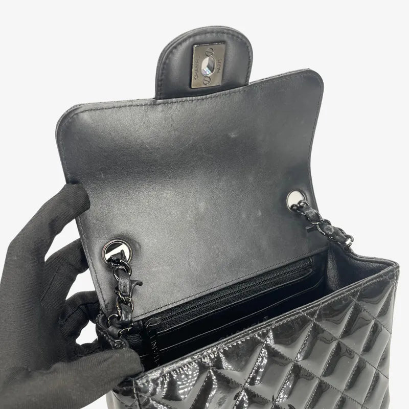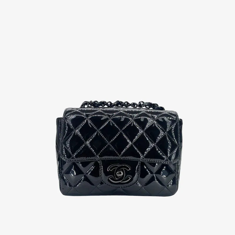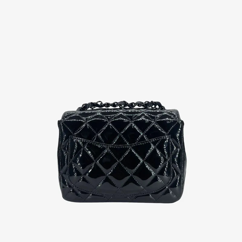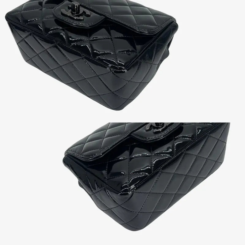 C666 - CHANEL So Black Patent Leather Mini Square Flap Bag