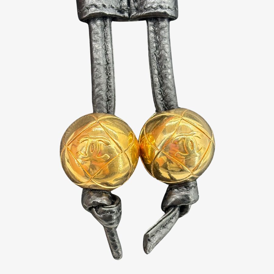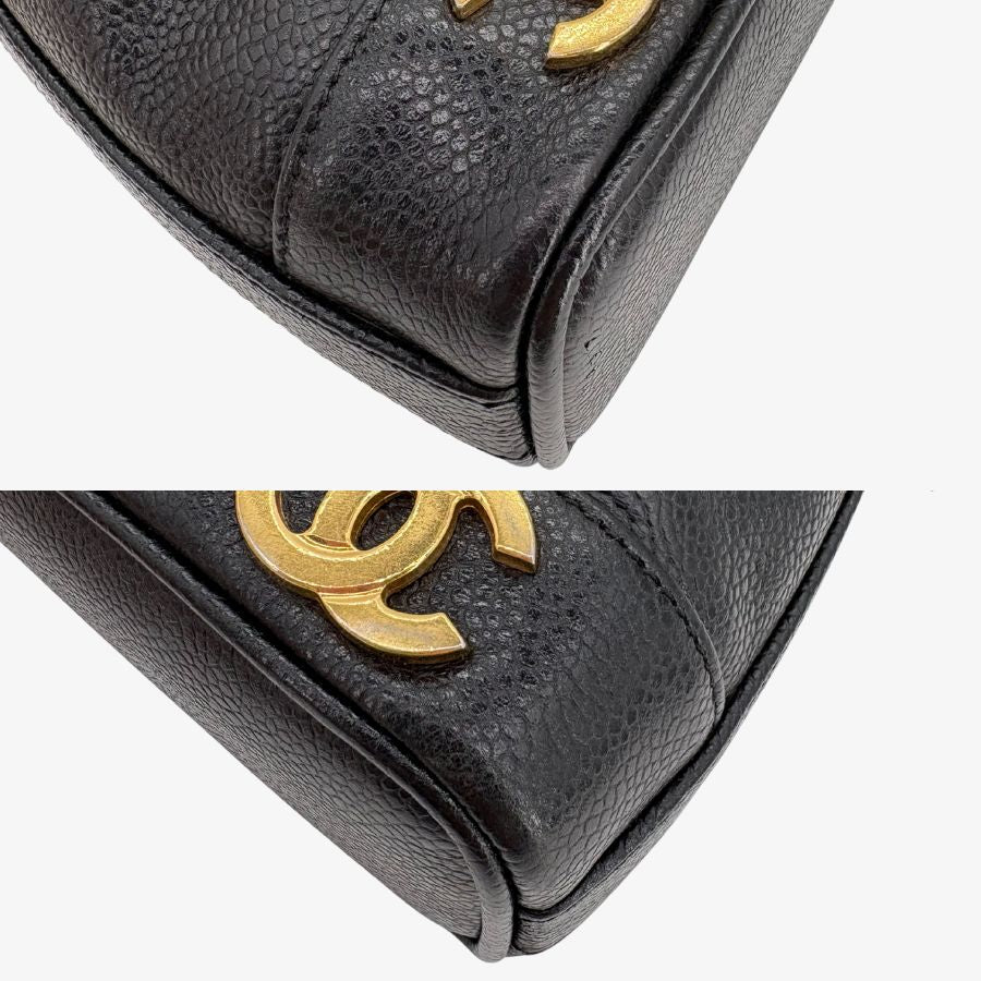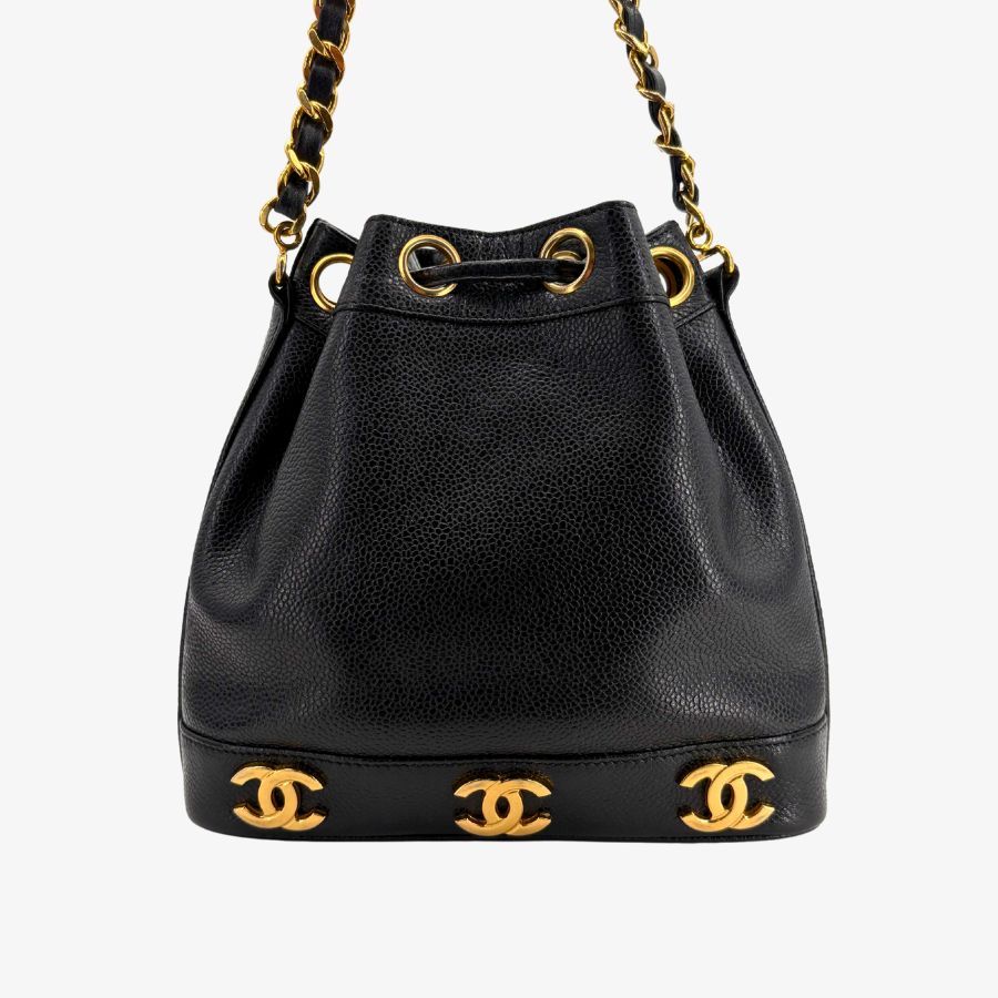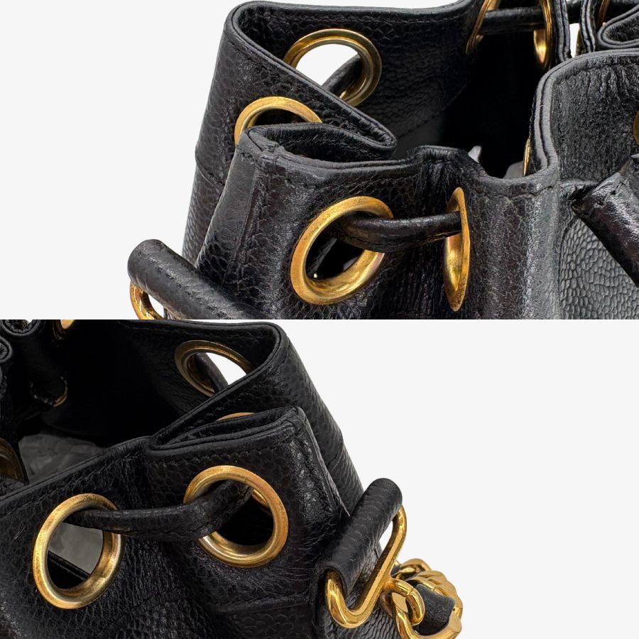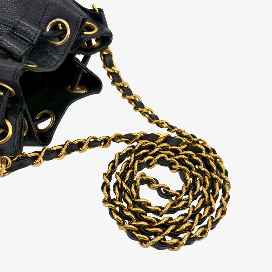 KB479 - CHANEL Vintage Black Caviar Leather Golden Ball Bucket Bag