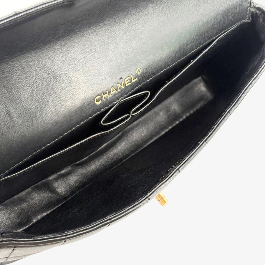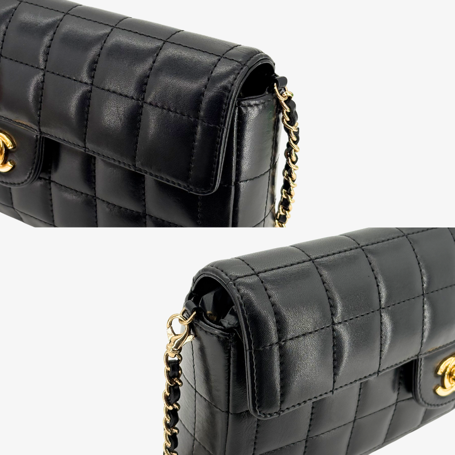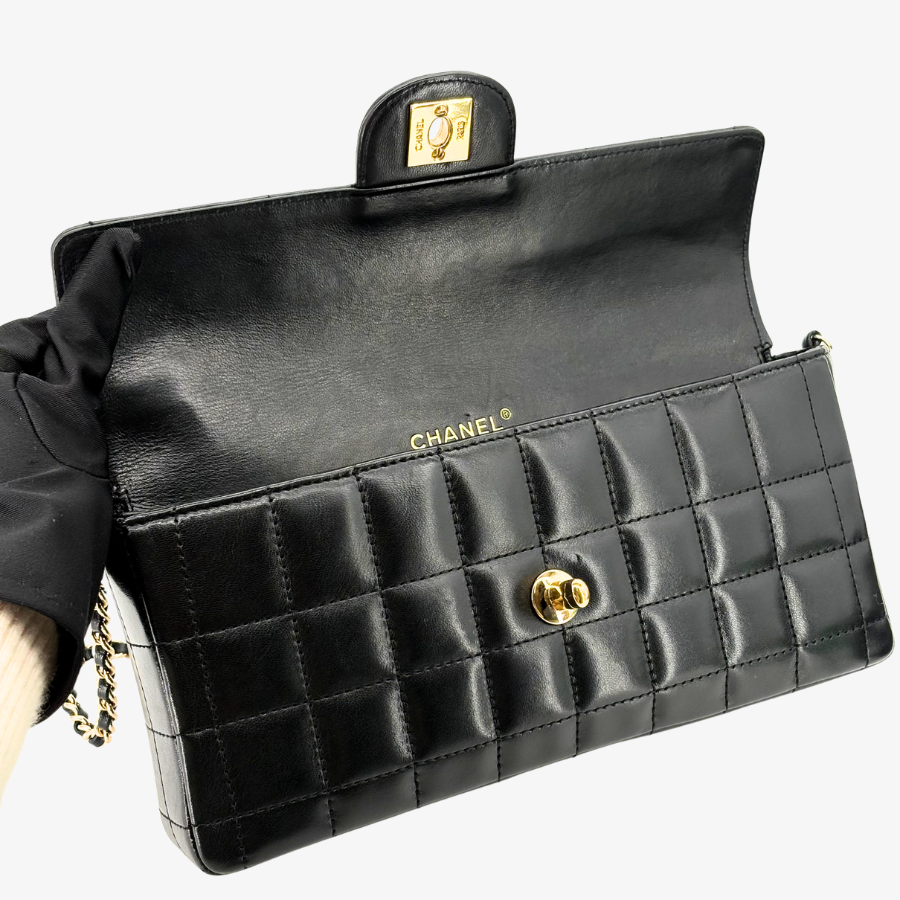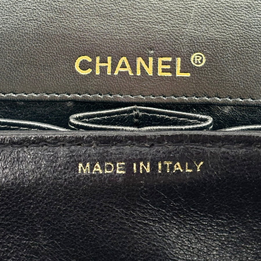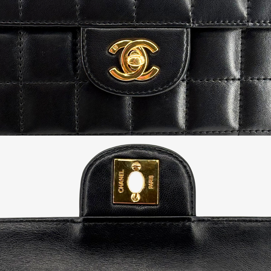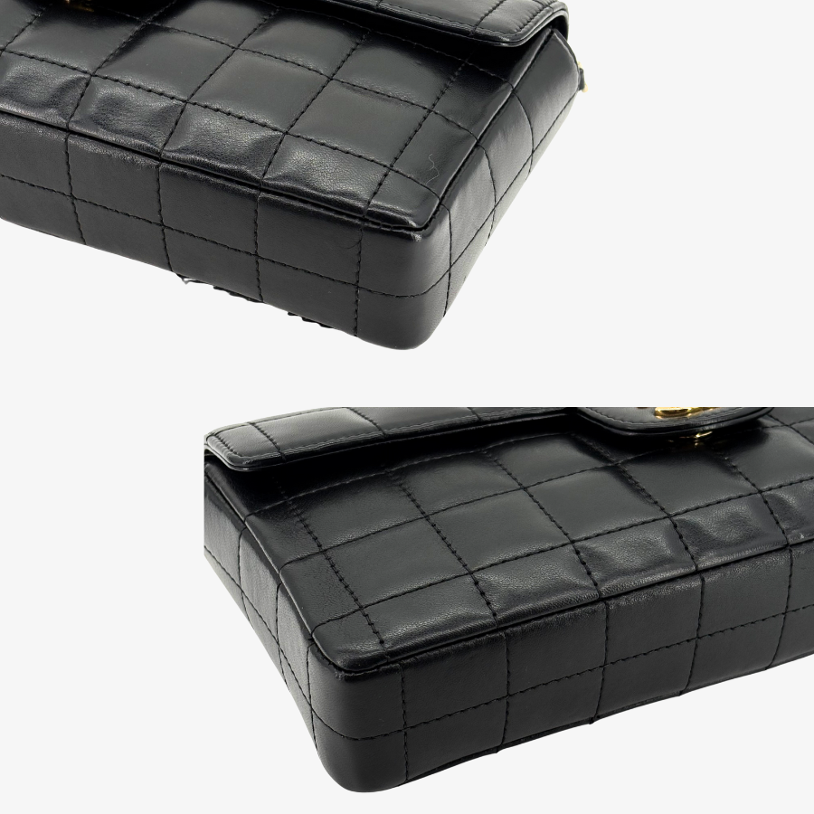 RG212 - CHANEL Vintage Black Lambskin Chocolate Bar Flap Bag