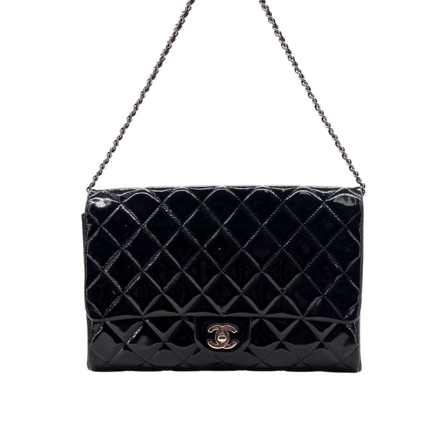 CS064 - CHANEL Black Patent Leather Flap Bag