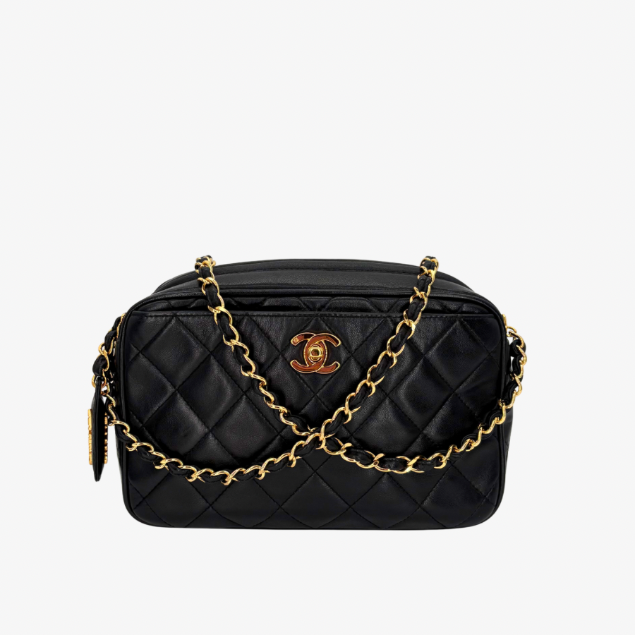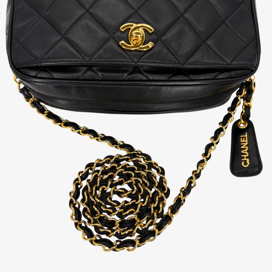 RG027 - CHANEL Vintage Black Lambskin Quilted Camera Bag