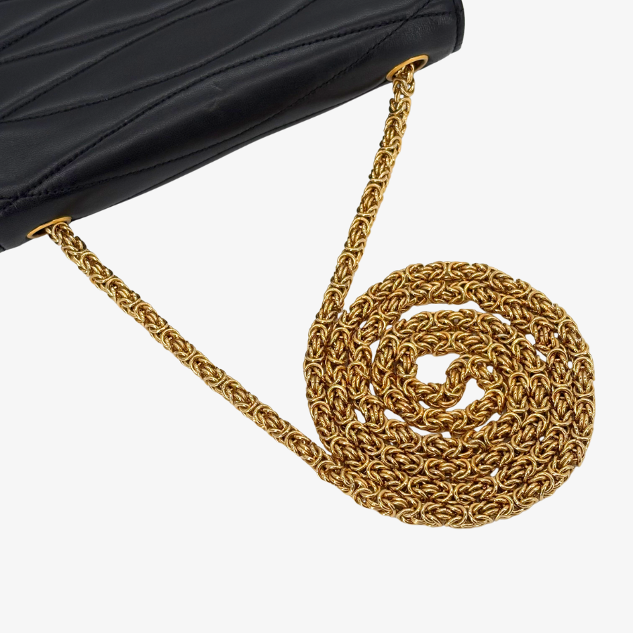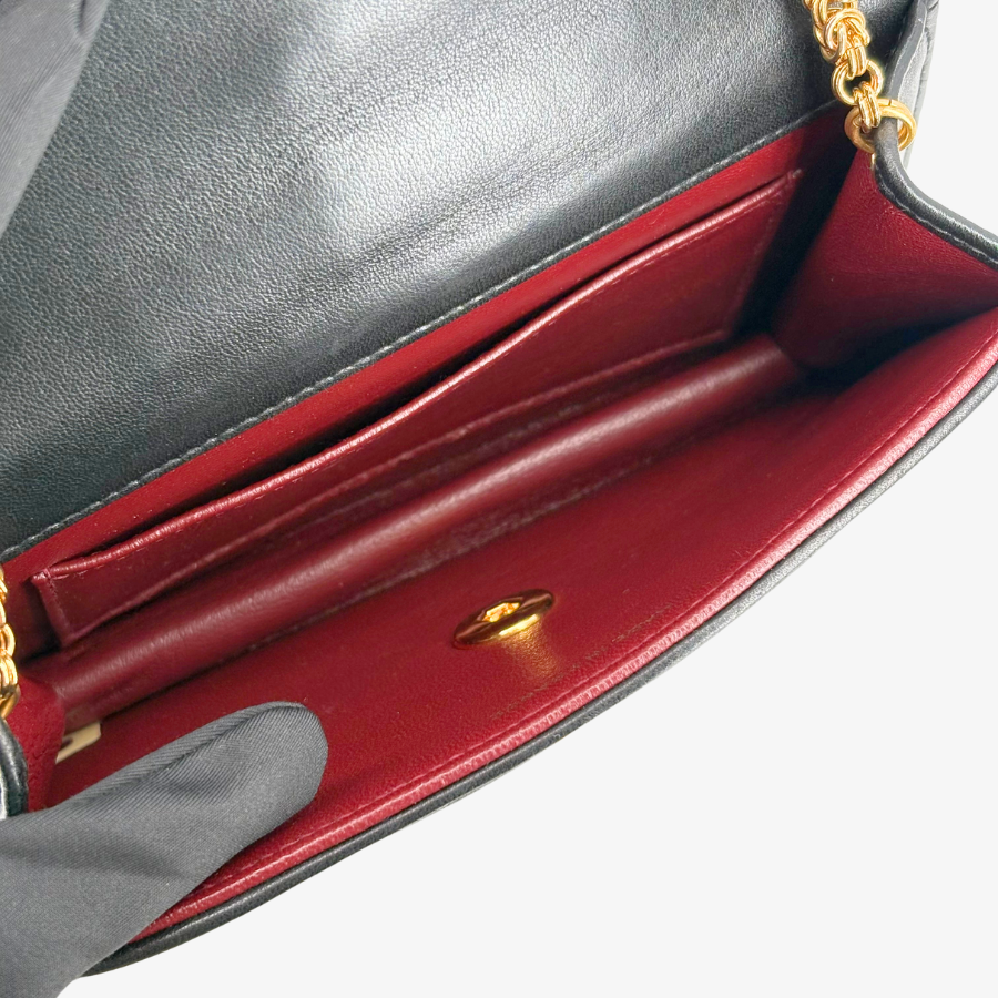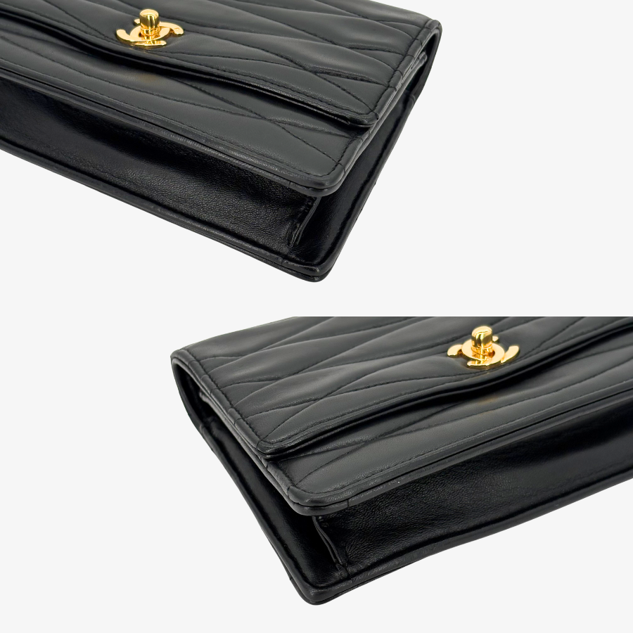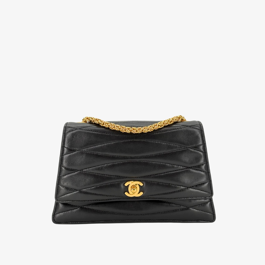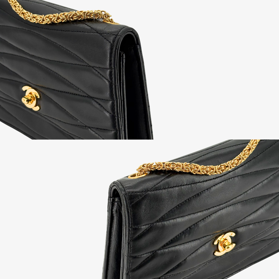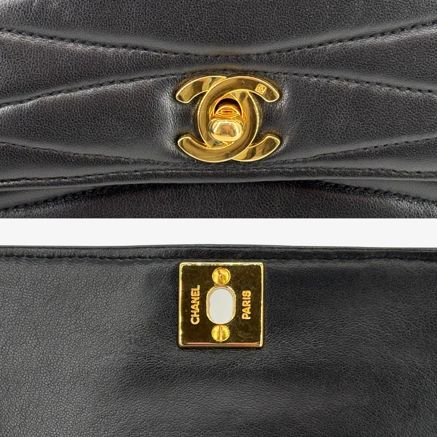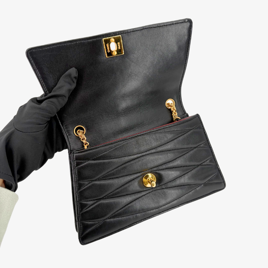 RG718 - CHANEL Vintage Black Lambskin Wave Stitch Flap Bag