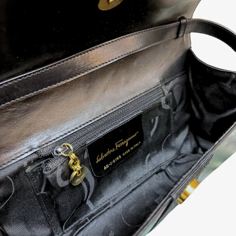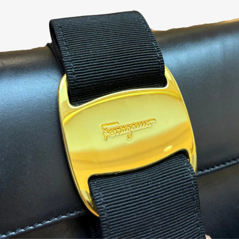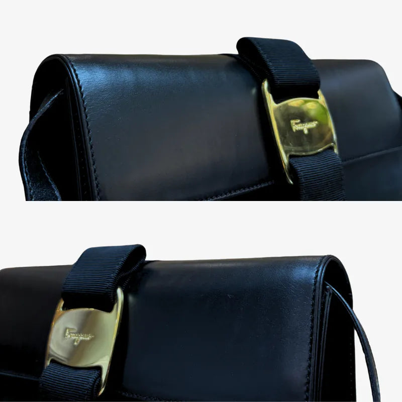 JY956 - SALVATORE FERRAGAMO Black Vara Leather Shoulder Bag