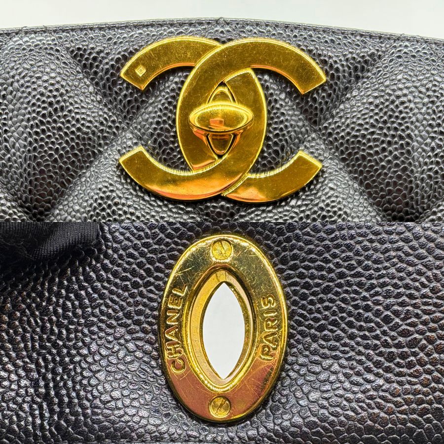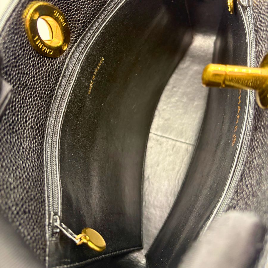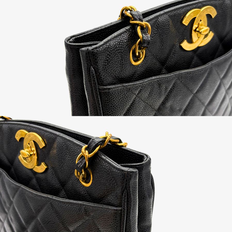 RG787 - CHANEL Vintage Black Caviar Leather Big CC Tote Bag